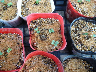 互いに邪魔し合わないように間引きしました。おらホはまずこんな風に間引きします。最終的には1ポットに1,2本