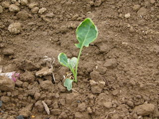 6月5日18時に定植したブロッコリー。一晩の雨で根付きました。