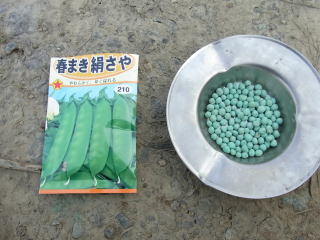サヤエンドウの発芽確認です。また春が来ました。