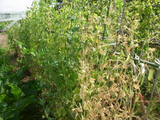 サヤエンドウの終焉です。あと1週間ほど収穫したかったので