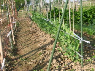 後はほったらかしです。葉っぱが白っぽくなったりする病気になるときもありますが、気にしません。学術的には何かの病気なんでしょうが、病気にかかったサヤエンドウは食べないし、病気していない隣のものを食べてきましたが、腹痛しませんでしたし、私死なないでおります。