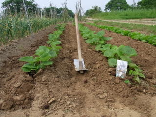 ゴボウ2回目の土寄せです。今年は調子いいです。
