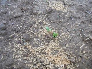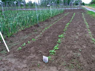 ゴボウの発芽確認です。昨年もここまで良かったのですが、間引きしたら生長が止まってしまいました。今年は間引きしないで