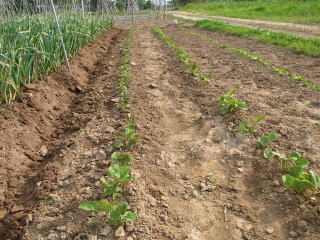 追肥して土寄せしました。一雨降ればグンと大きくなるでしょう。