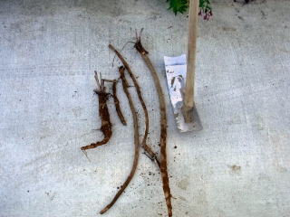 越冬ゴボウの収穫です。ツル無しササギを蒔くのに邪魔なので