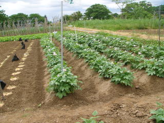 ジャガイモの花咲きそろい始めました。害虫といえば悪玉