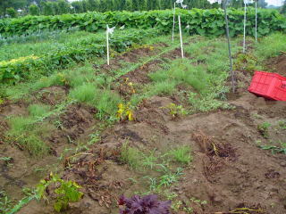6畝中、1畝半掘ったところで雨のために中止としました。