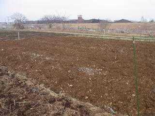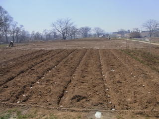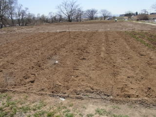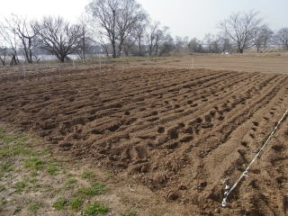 ジャガイモ植え付けのための耕耘完了です。土がきめ細かく