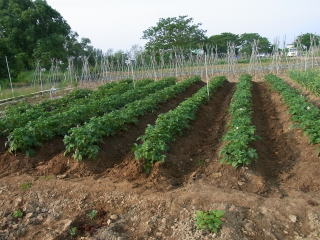 デコボコした畝間の土をならしながら土寄せいました。この時
