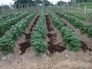 3回目の追肥をしました。土寄せは雨が降ってからです。