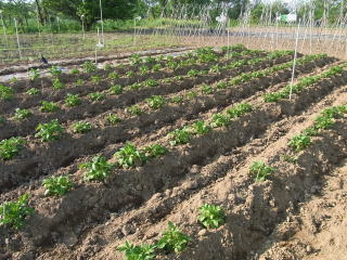ジャガイモ、例年になく順調です。ニジュウヤテントウムシは