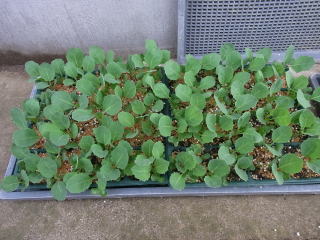 雪解け直後の越冬キャベツ。移植をする予定です。