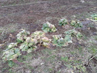 | キャベツはホームセンターで苗として売っているようですが1本70円〜80円くらいで明らかにコスト高。おらホでは昨年から萎え作りに挑戦しました。秋に種を蒔いて苗を作り、定植します。収穫は翌年6月頃です。 種まき 蒔き時 例年9月1日前後にしている。人によってはポットに種を蒔き適当な大きさになってから移植するが、おらホでは家庭菜園内で苗を作ってきた。 蒔き方 @良く耕した地面に高さ15センチ、幅45センチほどの床を作ります。 Aこの床に深さ3センチほどの溝を切ります。 Bここに1粒づつ種を筋蒔き風に置いていきます。この時まだ土を上掛けしません。 C買い求めた種の残り具合を確かめ、残っていたら適当に蒔き、足りないようだっらB種を拾い集め適宜蒔いていきます。 D土をかけてからその上に籾殻を籾殻を蒔きます。 ポイント 出来るだけ均等に薄く蒔き、間引きしないように心がけています。 手入れ 肥料 芽が出たら顆粒状肥料、尿素を蒔いています。 雑草取り 雑草取りはマメにしなければなりません。 定植 準備作業 @良く耕した地面に尿素、油かすなど均等に降り、更に良く耕し数日間放置しておきます。 定植 @穴開け器で20〜30センチ間隔となるようにとなるように穴を開けていきます。 A1本ずつ苗を植えていきます。 定植後の手入れ 肥料 顆粒状肥料、尿素を2回ほど投入しています。おらホでいうサクヅカゲです。 収穫 例年6月中下旬頃でしょうか。適当な大きさのものから適宜収穫していきます。 |