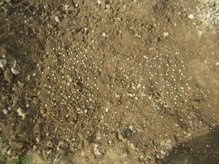 A豆同士ぶつからないようにバラバラと蒔きます。