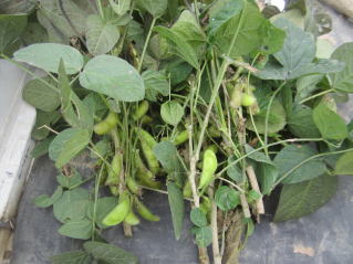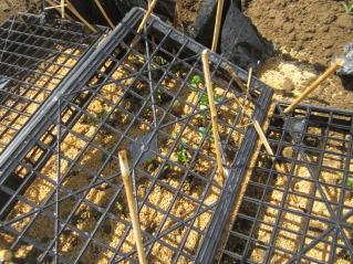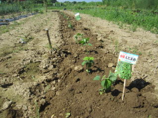 お盆に仏壇に供える夏豆の栽培補方である。若芽が野鳩に突かれるので、ネットで内で発芽させある程度大きくなってから定植している。
