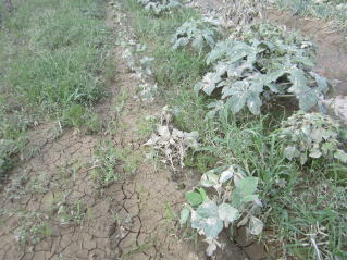 | 定植した豆に水かけ。黒くなっている。2022.07.09 5:25 |