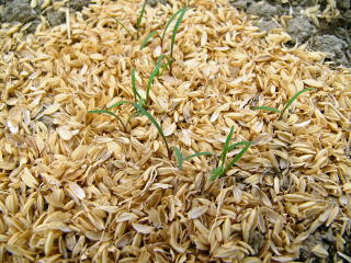 @気が向いたら、3センチメートル位の若芽になったとき顆粒状合成肥料をパラパラッとに蒔いています。