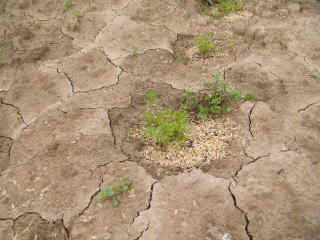 細かい種なので蒔きづらい。早朝の風のない時間帯