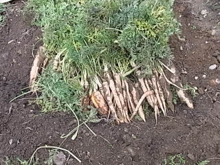 秋収穫ニンジン、雑草に埋もれていました。出来はあま