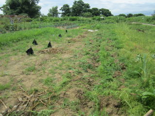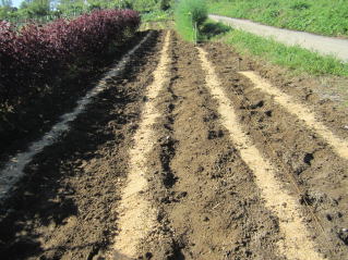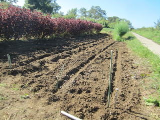 @10センチ間隔で仮置きし、数センチ程度の土をかけました。
