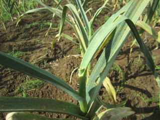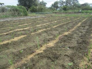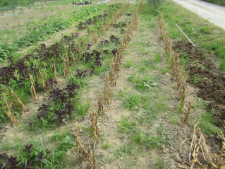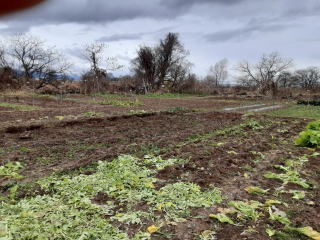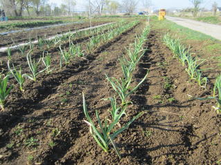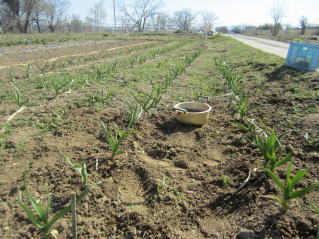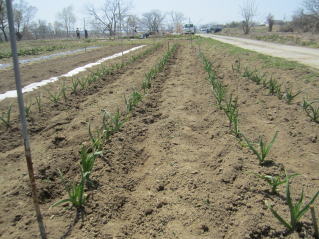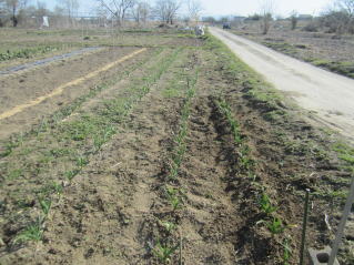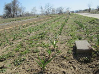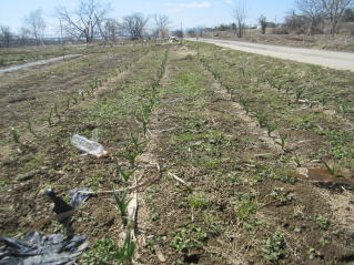 | 雪どけ直後のニンニク。雑草取りを待っている。2022.04.02 10:51 |