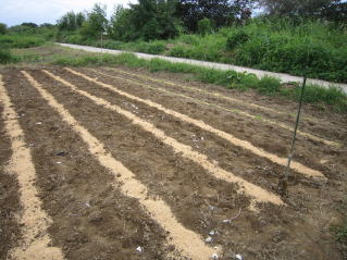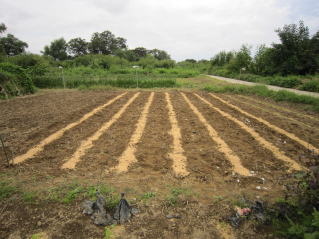 @10センチ間隔で仮置きし、数センチ程度の土をかけました。
