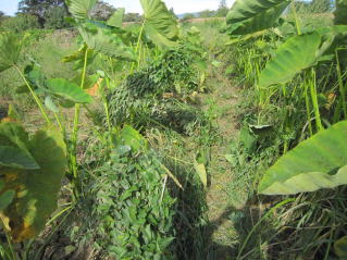 | 雑草の中、里芋。昨年の種がこぼれたカボチャが鎮座。2022.07.03 8:05 | 焦らずに雑草取り。2022.07.03 8:27 | ||||||||||||||||||||||||||