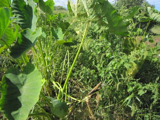 | キまずまずの大きさ。この時期に里芋は水を欲しがっている。2022.07.09 5:26 | ジャングル化した里芋。2022.09.19 7:57 | ||||||||||||||||||||||||||