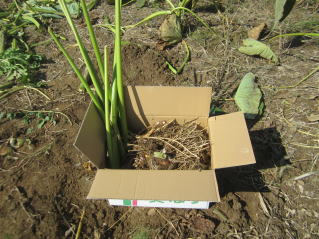 | 収穫した3株。茎はカットして肥料に。2022.10.16 9:50 | 知人にお裾分け3株。茎、干して保続食にもできる。2022.10.16 10:21 | ||||||||||||||||||||||||||