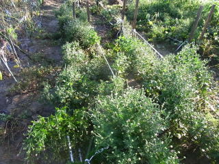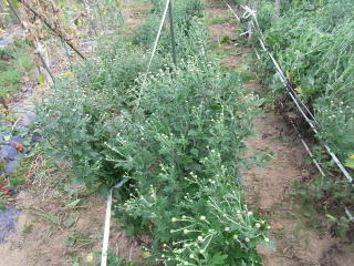 アカザ等の雑草が蔓延って倒壊防止のためのビニールテープも切れていました。もう少し早く雑草取りをしていれば良かったので