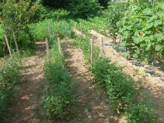 雑草を取って杭を打ちました。杭は倒壊防止のためにビニール