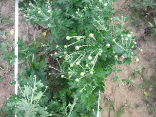 周りの土を寄せました。菊が生長しているのがわかります。