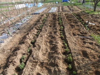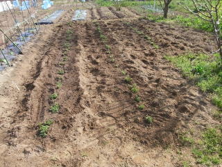 土をかけ、水をかけて作業完了です。以外と疲れました。