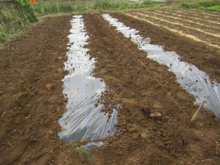 | タマネギはホームセンターで苗として売っているようですがコスト高。おらホでは秋に種を蒔いて苗を作り、定植します。収穫は翌年6月頃です。 種まき 蒔き時 例年9月1日前後にしている。人によってはポットに種を蒔き適当な大きさ(つまようじくらいの太さ、大きさ)になってから移植するが、おらホでは家庭菜園内で苗を作ってきた。 割り箸くらいの太さになってから定植している。 蒔き方 @良く耕した地面に高さ15センチ、幅45センチほどの床を作ります。 Aこの床に深さ3センチほどの溝を3本切ります。 Bここに1粒づつ種を筋蒔き風に置いていきます。この時まだ土を上掛けしません。 C買い求めた種の残り具合を確かめ、残っていたら適当に蒔き、足りないようだっらB種を拾い集め適宜蒔いていきます。 D土をかけてからその上に籾殻を籾殻を蒔きます。 ポイント 出来るだけ均等に薄く蒔き、間引きしないように心がけています。 手入れ 肥料 芽が出たら顆粒状肥料、尿素を蒔いています。ネギ類は肥料を与えた分だけ大きくなるようです。 雑草取り 雑草取りはマメにしなければなりません。 定植 準備作業 @良く耕した地面に尿素、油かすなど均等に降り、更に良く耕し数日間放置しておきます。 Aマルチ(黒いビニール)を敷き、固定します。これをまた、数日間程度放置しておきます。 定植 @穴開け器しい1畝3列、15〜20センチ間隔となるようにとなるように穴を開けていきます。 A1本ずつ苗を植えていきます。 定植後の手入れ 肥料 ネギ類は肥料を好むとありましたので、顆粒状肥料、尿素を2回ほど投入しています。おらホでいうサクヅカゲです。 収穫 例年6月中下旬頃でしょうか。適当な大きさのものから適宜収穫していきます。 |