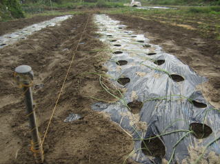 | マルチ張り完了。2022.10.09 13:56 | 購入した苗。1束50本、410円。2022.10.09 15:20 | ||||||||||||||||||||||||||