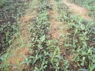 | マルチなしのタマナエギ苗。活き付いている。2023.11.12 12:13 | 越冬タマネギ群。2023.11 9:08 | ||||||||||||||||||||||||||