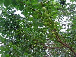 実の重みで枝が垂れてきました。今年も豊作?