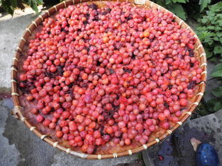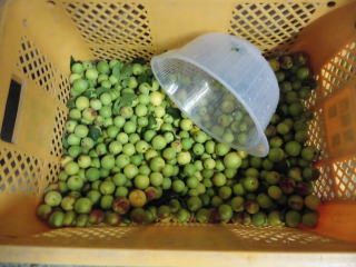 1 家庭菜園で収穫した梅を水洗いします。日中午後に収穫しまし