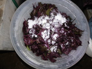 7 6シソに先に取っていた3梅酢を入れ好みの塩を入れて手もみ