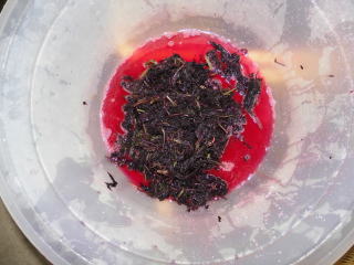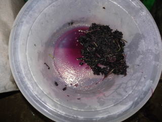 6 数分シソモミすると濃い汁が出てくるので、この絞り汁を捨て