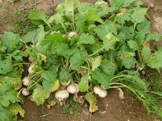 白かぶが適当な大きさになったので間引き風に収穫した。