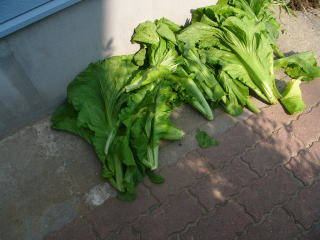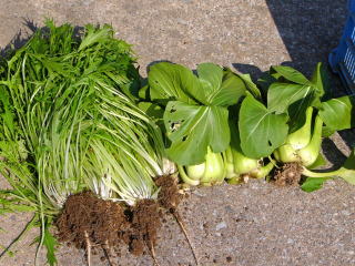 青菜(せいさい)、京菜、チンゲンサイの収穫をする。青菜はピリ辛即席漬けにし、京菜は鍋物していただいた。チンゲンサイはスーパーで売られているものと遜色ない出来映えである。