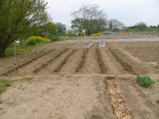 左から春蒔き夏大根、2列目手前京菜、奥山東菜、3列目