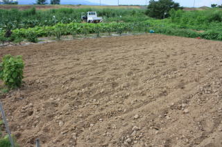 昨年の日誌をよれば白菜のポット種蒔きが8月20日。そろそろ秋野菜の耕耘に拍車をかけないと...。まとまった雨も降り、耕耘するのに程良い土の硬さに。ここで耕耘しないとまた雑草が蔓延ってくる。石灰を蒔いてあと2回は耕耘したいところだ。