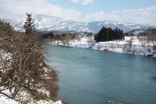 写真は最上川隼地区、絵のモチーフにする風景です。