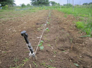| オクラの本葉が出てから1週間程度、定植待ちの状態であった。天気予報では10日から雨降りとのこと。絶好機とばかり定植をした。 アスパラガスの定植をした。 秘伝豆は10月に収穫するいわゆる秋豆。亡き父はアオバチ豆と呼んでいた。秘伝豆の種蒔きをした。 |