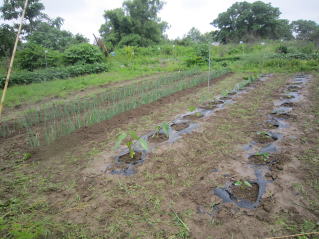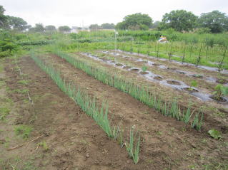 | 気掛かりだった里芋とネギの雑草。例年、この期の雑草取りをせずにジャングル化しいるおらホ の家庭菜園。今年こそと、一大決心をして雨中での草取りをした。他人が見れば異様な光景だったに 違いない。 |