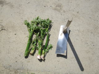 | ウド収穫。おらホの家庭菜園の隅っこに飢えていたウド。味噌汁にしていただきました。 2020.05.05 10.51 | おらホの家庭菜園、赤〇内。耕耘完了しました。2 020.05.06 9:30 |