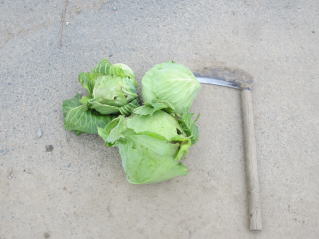 | 作業中にしの空に何やら黒い雲。作業中止。2021.09.23 11:49 | 今日の収穫、ミニ?キャベツ。2021.09.23 完了。2021.09.20 12:22 |