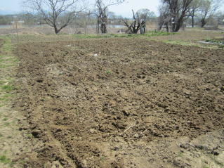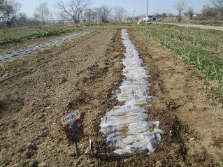 | シソ種蒔き、ニンニク雑草取り、そして里芋、ジャガイモのための耕耘 | |